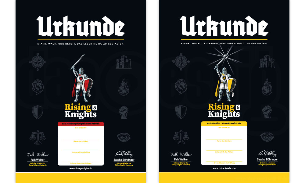 Web & Print Web & Print Projekt 070 BAUJAHR: 12/2025 PROJEKT: Rising Knights Urkunden AUFGABE: Illustration / Layout KUNDE: Newman-Escrima Kampfkunst Gbr
